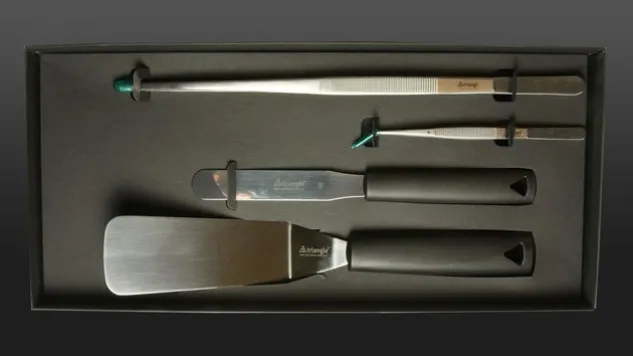 Mit dem triangle® Anrichtset Gourmet hat der Profi- wie auch Hobbykoch alles zur Hand für ein kreatives Anrichten von Lebensmitteln. Die 4 praktischen Küchenhelfer des Anrichtset Gourmet sind unerlässlich, um schmackhaft Zubereitetes professionell anzurichten.