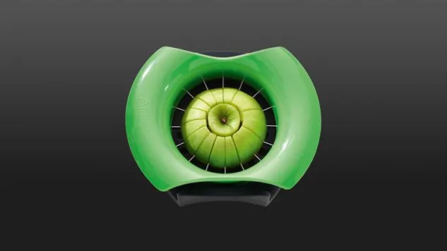 Die geschärften Klingen des Apfelteilers sorgen für saubere Schnittkanten. Durch die innovative Unterschale werden mit dem Apfelteiler sauber durchtrennte Spalten erzielt.