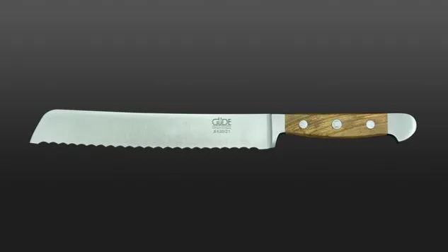 Das Brotmesser Olive überzeugt durch die herausragende Schneidekraft. Mit dem Güde-Wellenschliff vom Brotmesser Olive wird jedes Brot in schöne Scheiben geschnitten.