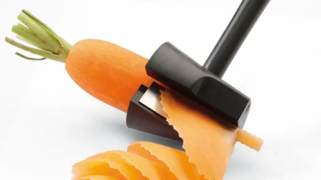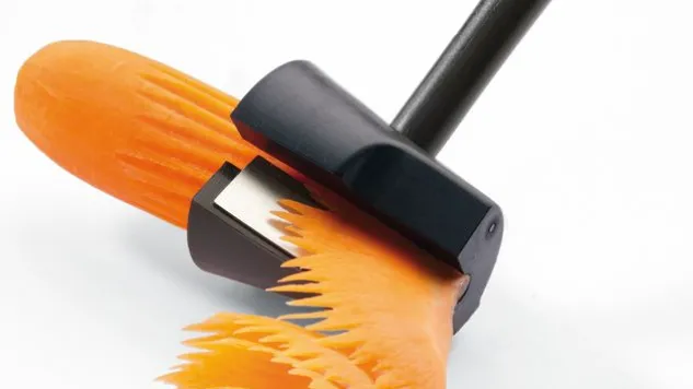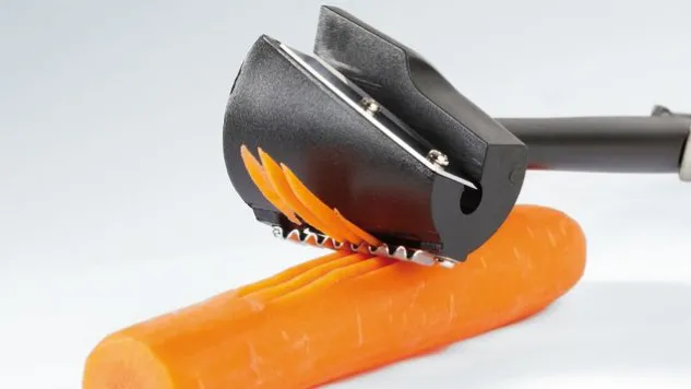 Der triangle® Deko Spiralschneider verwandelt Obst und Hartgemüse in appetitanregende Blütenträume indem der Deko Spiralschneider dünne Spiralen mit Wellen schneidet.