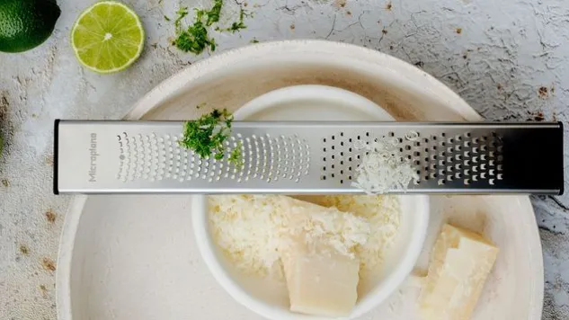 Die Doppelreibe Zester/Grob liegt kompakt wie eine Feile in der Hand. Für die Doppelreibe Zester/Grob der Premium Classic-Serie von Microplane mit Klinge aus langlebigem und photo-geätztem Edelstahl wird Handabwasch empfohlen.