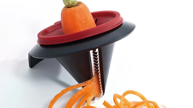 Gemüsestreifen sind mit dem triangle® Endlos-Julienneschneider ein Kinderspiel. Endlose Girlanden entstehen mit dem Endlos-Julienneschneider aus festen Gemüsesorten wie Zucchini, Möhren, Gurken, Auberginen, Rettiche, Staudensellerie und Kartoffeln als Spaghetti-dünne Streifen.