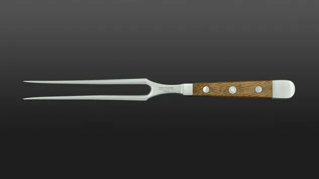 Die Güde Fleischgabel zeichnet sich durch ihr schönes Design aus, dass durch den rustikalen Fasseichenholzgriff vollendet wird.