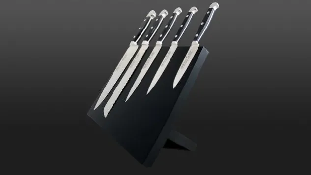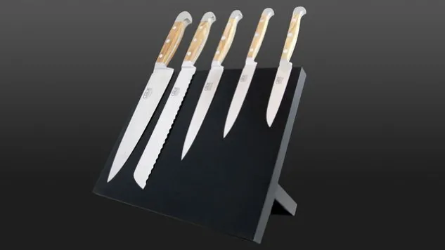 Dieser Güde Messerhalter ist schwarz und wird unbestückt geliefert. Bestückt mit 5 Güde Alpha Messern ist er als Güde Messerhalter Set erhältlich.