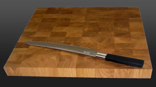 Der Hackblock XL ist aus Kopfholz gefertigt und damit besonders schneid- und schlagfest. Zum Schonen der Kochmesser bitte nie auf harten Schneidunterlagen wie Granit, Glas oder Keramik schneiden.