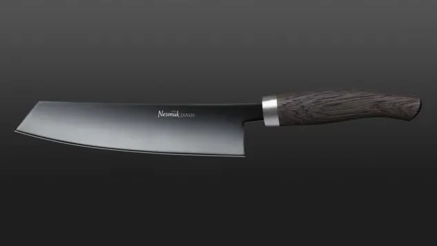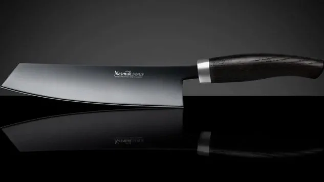 Der exquisite Griff des Janus Kochmessers aus europäischer, bis zu 5000 Jahre alter Mooreiche, ein relativ leichtes Holz, sorgt beim Janus Kochmesser für ein erstaunlich leichtes Führen. Ein handwerkliches Meisterstück, geschmiedet aus jahrelanger Erfahrung.