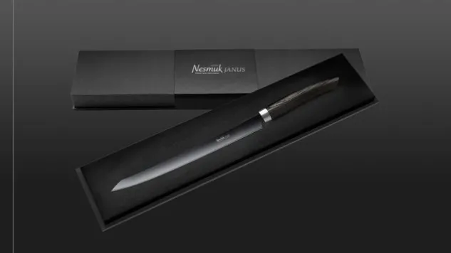 Der Janus Slicer überzeugt gänzlich; die 26 cm lange, halb-flexible Klinge ist bestens geeignet für lange und präzise Schnitte. Mit dem langen Janus Slicer filetiert man auch grosse Fische mühelos und dank der extrem harten Klinge gelingt auch das Schneiden von Schinken in hauchdünne Tranchen.
