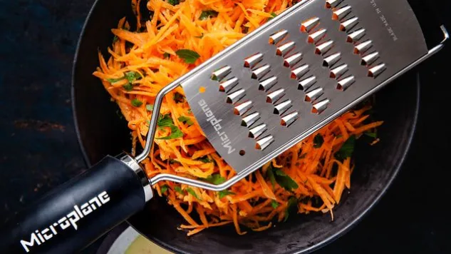 Dank der feinen Julienne Edelstahl-Klinge der Juliennereibe sehen die geriebenen Streifen von Möhren, Selleriewurzeln, Zucchinis, Äpfeln, Birnen, Kartoffeln, Rote Beete, Radieschen oder Gurken ein wenig breiter, jedoch feiner und dünner aus als die klassischen Julienne-Streifen sowie nicht so breit wie das Reibergebnis mit einer extra groben Klinge.
