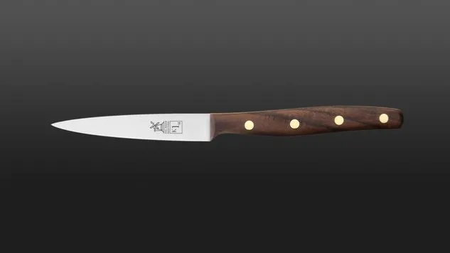 Das K1 Gemüsemesser Walnuss aus der Manufaktur Windmühle ist ein praktischer kleiner Helfer in der Küche. Die Mittelspitz-Klinge des K1 Gemüsemessers Walnuss ist aus Chrom-Vanadium-Molybdän Stahl und somit rostfrei.