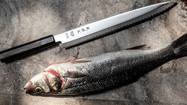 Die 30 cm lange Klinge des KK Yanagiba extra lang ist perfekt zum Filetieren von Fisch. Die einseitig geschliffene Schneide des KK Yanagiba extra lang ist aus rostfreiem Carbonstahl gefertigt und ist mit einer weichen, wellenförmigen Linie als satiniertes Finish verziert.