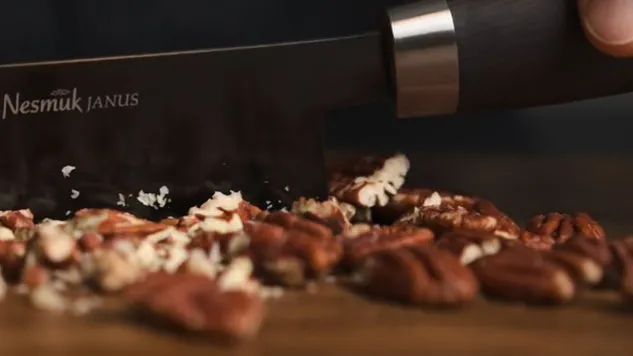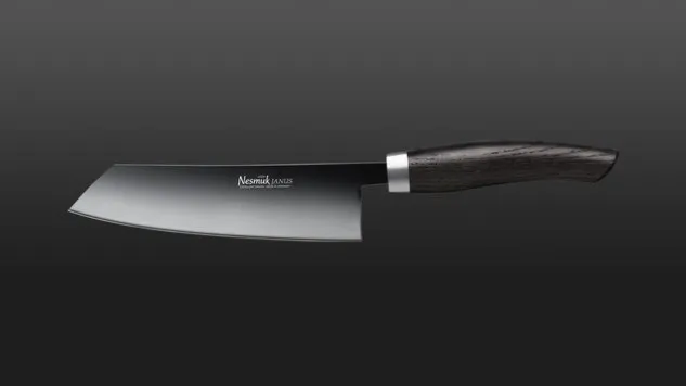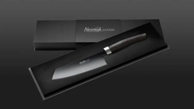 Der edle Griff des kleinen Kochmessers Janus aus europäischer Mooreiche (bis zu 5000 Jahre alt), hat ein erstaunlich geringes Gewicht. Das kleine Kochmesser Janus wird in der Solinger Schmiede Nesmuk von Hand hergestellt.