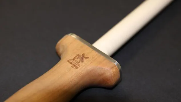 Der wertige Holzgriff des Korund-Wetzstabs passt gut zur Wertigkeit der sknife Messer. Das Material des dicht gebrannten Korund-Wetzstabs hat zudem einen grossen Vorteil gegenüber herkömmlichen Keramikschleifstäben, er erziehlt höchste Schärfe und eine extrem glatte Meserschneide gleichzeitig.