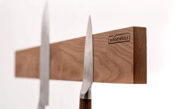 Die magnetische Messerleiste hält bis zu 5 Messer sicher und stabil und kann z.B. auch als Schlüsselbrett verwendet werden. Die magnetische Messerleiste wird aus edlem Walnussholz in Deutschland produziert und hat eine feine Satin-Oberfäche.
