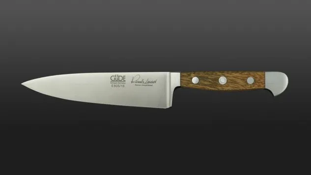 Das Messer Güde ist ein vielseitig einsetzbares Kochmesser. Der Griff des Messer Güde ist aus über 80-jährigem Fasseichenholz.