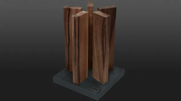 An den Holzflächen des Messerblock Kai bleiben die Klingen durch ein neuartiges Magnetsystem haften. Der von dem gleichnamigen Bauwerk aus der Jungsteinzeit inspirierte „Stonehenge“ Messerblock Kai hat 5 Holzsäulen, die die Messer sicher halten.
