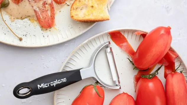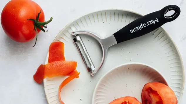 Für Obst oder Gemüse mit weicher Schale eignet sich der Profi Y-Schäler gezahnt. Mit dem Profi Y-Schäler gezahnt lassen sich Tomaten, Kiwis oder Mangos ideal schälen, ohne die Haut zu verletzen oder das Schälgut zu beschädigen.