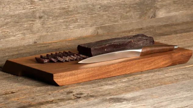 Das Salsizmesser mit Brett wird in der Schweiz hergestellt. Das Salsizmesser mit Brett besteht aus einem geschmiedeten Messer aus Chirurgiestahl und einem Griff aus Walnussholz, sowie einem magnetischen Schneidebrett, ebenfalls aus Walnussholz.