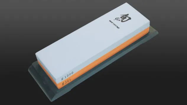 Der Schleifstein bietet eine grobe Seite zum Schleifen und eine feine Seite zum Schärfen. Dieser Schleifstein von Kai ist ein Universalschleifstein.