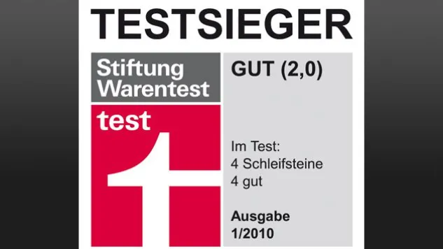 Der Schleifstein hat eine Körnung von 300/1000 und ist Testsieger bei Stiftung Warentest.