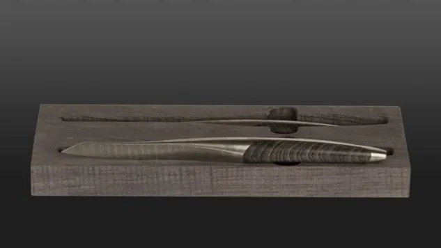 Das Schweizer Damastmesser Set weist eine Stahlhärte von 60 HRC auf. Geliefert wird das Schweizer Damastmesser Set in einer Box aus dunklem Holz.