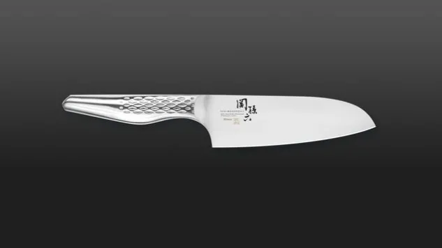 Das Shoso Santoku klein hat einen ergonomisch geformten Metallgriff mit Rautenmuster. Das Shoso Santoku klein eignet sich ideal für das Schneiden von Gemüse, Fleisch, Obst und Kräutern.