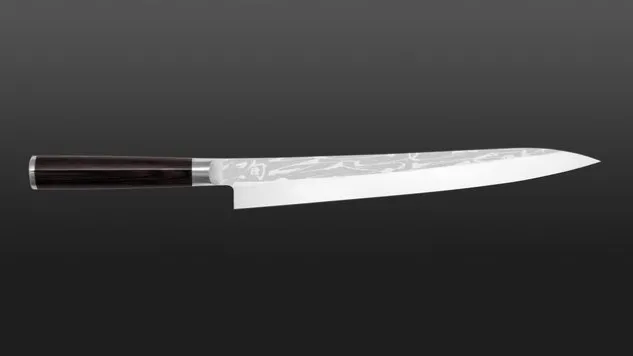Das einseitig geschliffene Shun Pro Sho Yanagiba gross ist ein stabiles und schweres Messer mit einer kräftigen Klinge. Traditionell wird das Shun Pro Sho Yanagiba gross in Japan als Filiermesser für Fisch eingesetzt.
