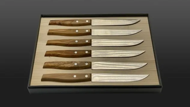 Dieses Steak- und Pizzamesser Set wird in Solingen produziert und hat Griffe aus FSC®-zertifiziertem Olivenholz. Das Steak- und Pizzamesser Set hat glatte Klingen, welche sich leicht nachschleifen lassen. Die Messer eignen sich auch für den Einsatz in der Gastronomie.