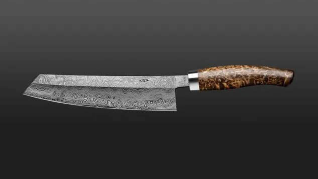 Als Klingenmaterial des Volldamast Kochmesser wurden ausgesuchte Kohlenstoffstähle verwendet. Die Volldamast Kochmesser Klinge ist ideal ausbalanciert, mit einem doppelseitigen Hohlschliff ausgestattet und wird durch eine silberne Messerzwinge passgenau und auf ästhetische Weise mit dem Griff aus klassischem Birkenholz verbunden. Die schöne, feine Maserung des Griffes wird mit aufwendigen Beiz- und Ölbehandlungen ausgearbeitet. Damit das Volldamast Kochmesser perfekt in der Hand liegt, wurde die Griffergonomie auf ermüdungsfreies Arbeiten getestet und entsprechend an die optimale Handhabung angepasst. Das Volldamast Kochmesser ist ein echtes handwerkliches Meisterwerk, das traditionelle Schmiedekunst mit hochwertiger und moderner Werkstoffqualität vereint und in funktionaler und ästhetischer Hinsicht begeistert.