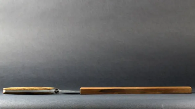 Das Caminada Brotmesser mit Holzscheide entstand aus einer Zusammenarbeit des Spitzenkochs und der Manufaktur Güde in Solingen. Die Holzscheide, welche einen optimalen Schutz bietet, besteht aus Walnussholz aus dem Prättigau, einer Region in Caminadas Heimat Graubünden.