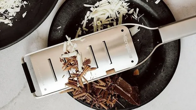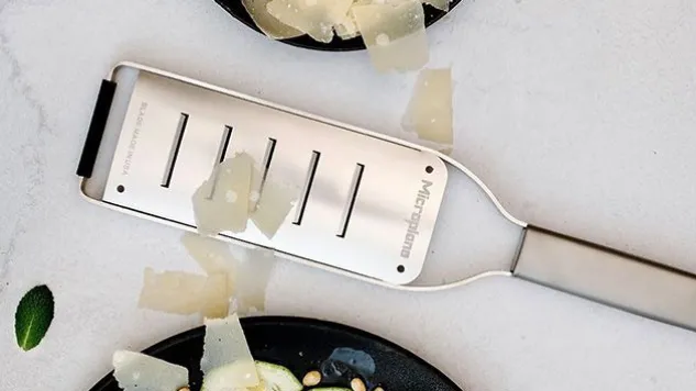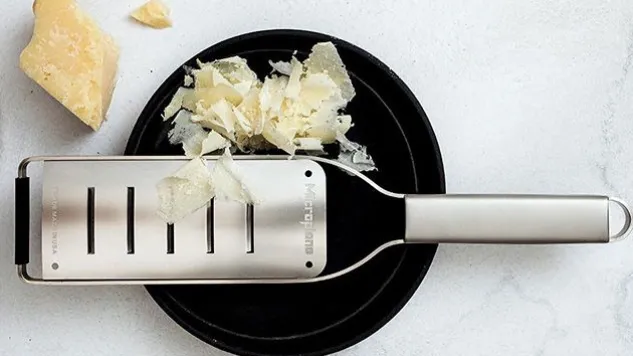 Die grosse Raspel Pro von Microplane eignet sich für breite, hauchdünne Späne und Röllchen von Käse, Schokolade, Butter, Zucchini. Die grosse Raspel Pro verfügt über fünf längliche Klingen; zum mühelosen Hobeln von Lebensmitteln in einem Schwung.