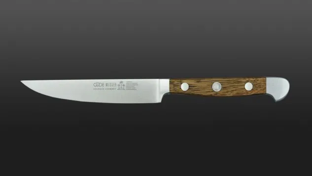 Das Güde Steakmesser Rustico ist grösser als das herkömmliche Steakmesser. Hergestellt in Solingen überzeugt das Güde Steakmesser Rustico durch seine Schärfe und das edle Design.