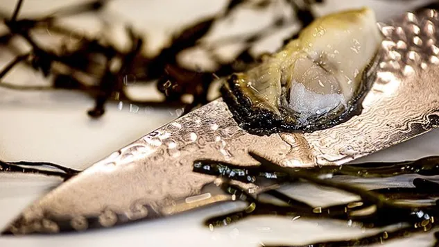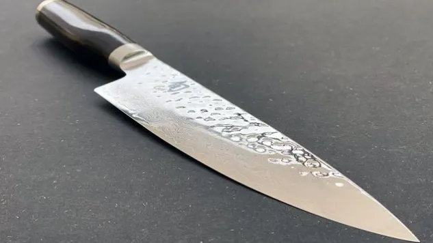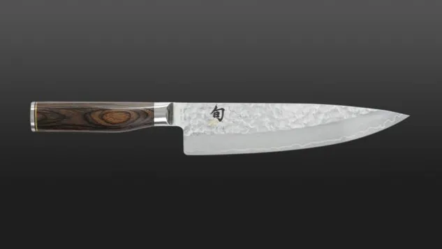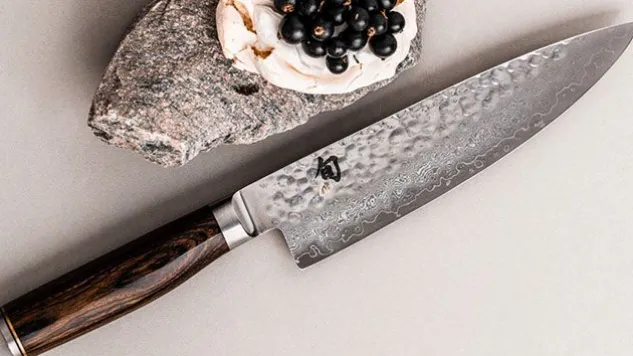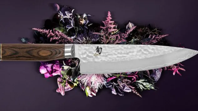 Das aus 32 Lagen korrosionsbeständigem Damaszenerstahl gefertigte Kai Kochmesser der Shun Premier Tim Mälzer Serie ist mit einer Hammerschlagoberfläche – die in Japan als Tsuchime bekannt ist – verfeinert und vereint somit zeitlose Ästhetik und ultimative Schärfe.