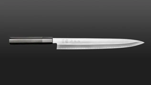 Die 27 cm lange Klinge des KK Yanagiba ermöglicht hauchdünne Schnitte – perfekt zum Fischfiletieren. Die einseitig geschliffene Schneide des KK Yanagiba ist aus rostfreiem Carbonstahl gefertigt und ist mit einer weichen, wellenförmigen Linie als satiniertes Finish verziert.