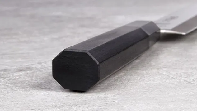 Das KK Yanagiba der Seki Magoroku KK Yanagiba Serie zeichnet sich durch seine puristische Formsprache aus. Das japanische Filetiermesser KK Yanagiba ist mit einem oktogonalen, schwarzmatten Pakkaholzgriff ausgestattet.