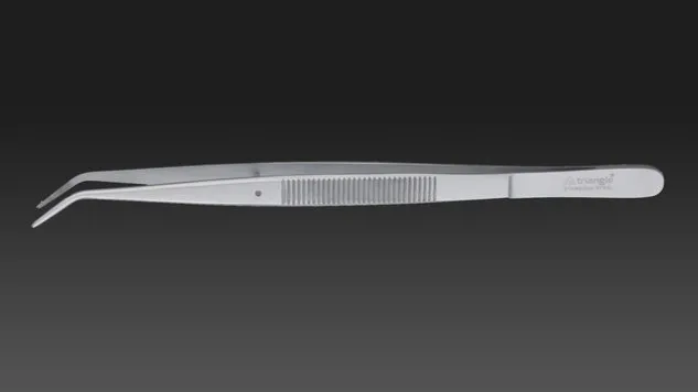 Die vordere Greiffläche der triangle® kleinen Pinzette gekröpft ist geriffelt, der Arbeitsteil besteht aus rostfreiem Edelstahl. Die kleine Pinzette gekröpft ist ideal für kleine, feine Dekorationsarbeiten.