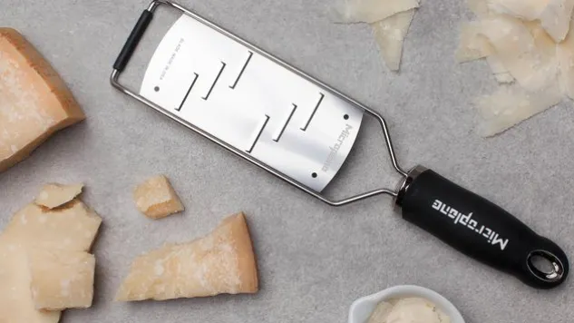 Mit der Küchenreibe von Microplane lassen sich breite Späne zum Verzieren reiben. Ideal einsetzbar ist die Küchenreibe für die Käsespäne für den Caesar Salat.