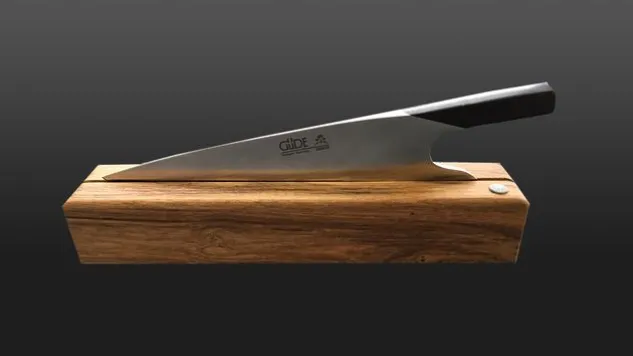 Der Messerhalter Güde wird ohne das abgebildete Messer geliefert. Der Messerhalter Güde eignet sich als sichere und praktische Aufbewahrungslösung für die Kochmesser-Modelle „The Knife“ und „The Knife Damast“.