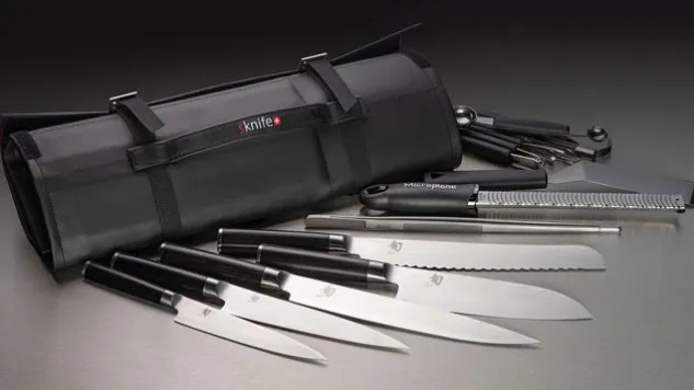 Die Messertasche Shun ist eine kompakte Lösung für den Profi- und Hobbykoch, ausgestattet mit 5 hochwertigen japanischen Messern aus der Kai Shun-Serie. Die Messertasche Shun ist mit magnetischen Laschen versehen, sodass jede Messerklinge einfach und sauber für den Transport geschützt wird. Die Mappe wird in der Schweiz hergestellt.