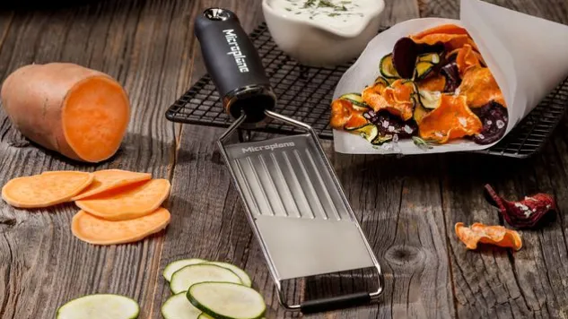 Der Microplane® Gourmethobel hobelt Schneidgut präzise, ohne es zu verdrücken. Der Microplane® Gourmethobel ist besonders für das Schneiden von Kartoffeln, Gurken, Karotten, Zwiebeln, Pilzen und Äpfeln geeignet.