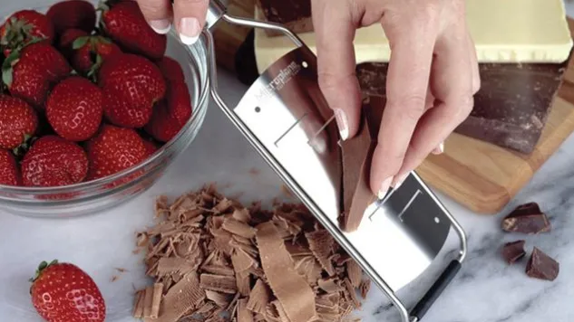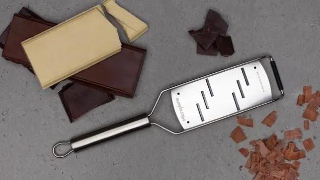 Mit der Microplane Raspel lassen sich hauchdünne Späne zum Verzieren von Speisen reiben. Die Microplane Raspel eignet sich für Käse- oder Schokoladespäne.