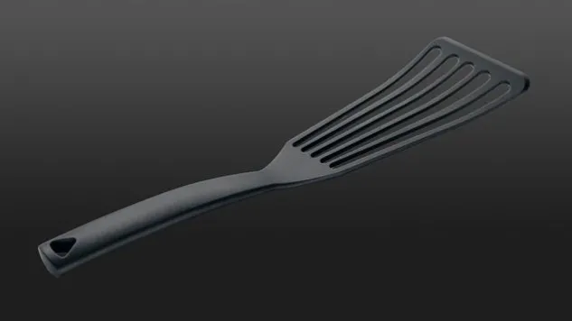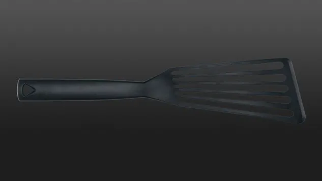 Die geschlitzte Wendefläche des Nylon Wenders lässt überschüssiges Fett ablaufen, die dünne Vorderkante gleitet einfach unter die Speisen. Der Nylon Wender ist spülmaschinengeeignet.