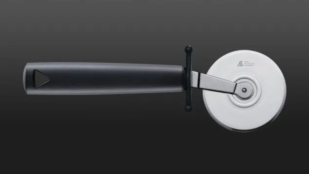 Der Pizzaschneider hat einen Rollmesser-Durchmesser von 7 cm. Das Arbeitsteil des Pizzaschneiders aus rostfreiem Edelstahl und der Griff aus Polypropylen sind spülmaschinengeeignet.