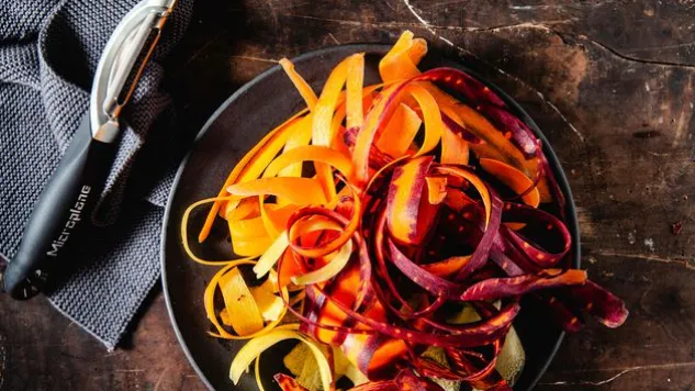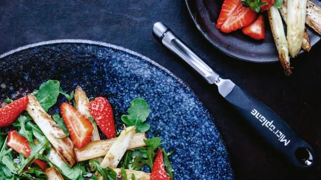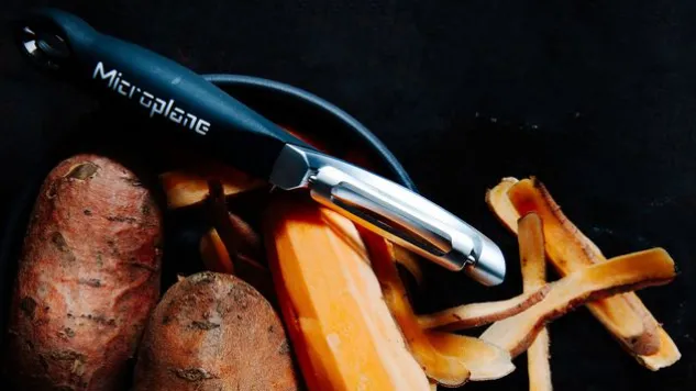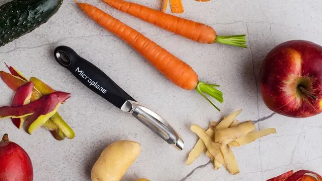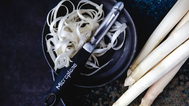 Der Microplane® Profi-Schäler mit doppelseitiger Edelstahlklinge überzeugt durch seine Schärfe und vielseitige Funktionalität. Mit dem Profi-Schäler lassen sich sowohl weiche wie harte Lebensmittel hauchdünn schälen.