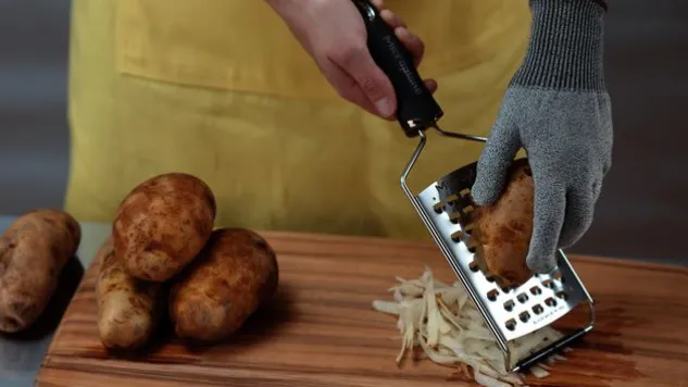 Die Röstiraffel eignet sich besonders gut für Kartoffelspeisen. Mit dieser Röstiraffel kann auch gut Käse zum Überbacken von Gratins geraffelt werden.