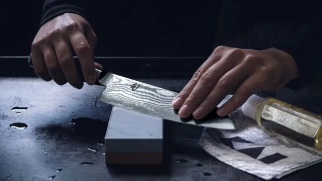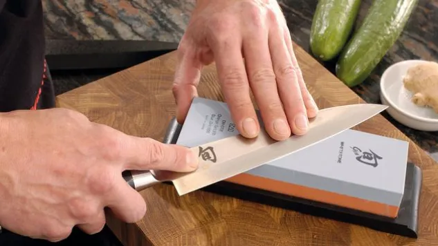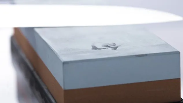 Der Schleifstein bietet eine grobe Seite zum Schleifen und eine feine Seite zum Schärfen. Dieser Schleifstein von Kai ist ein Universalschleifstein.