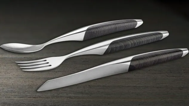 Das Steakbesteck mit Designpreis wird als Steakbesteck mit Löffel Esche mit einem Gourmetlöffel komplettiert! Das Steakbesteck mit Löffel Esche wird in der Schweiz aus hochwertigen Materialien gefertigt: die Besteckteile bestehend aus Steakmesser, Gabel und Löffel werden aus Chirurgenstahl geschmiedet, was für eine vierfach höhere Korrosionsbeständigkeit sorgt.