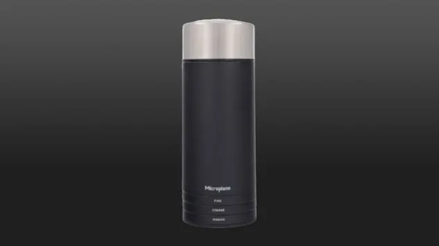 Die Microplane® Universal-Mühle mahlt mit drei auswechselbaren Klingen fein, mittel und grob. Die unverkennbaren Edelstahlklingen der Universal-Mühle kommen auch hier zum Einsatz: photo-geätzt, langlebig und rasiermesserscharf.