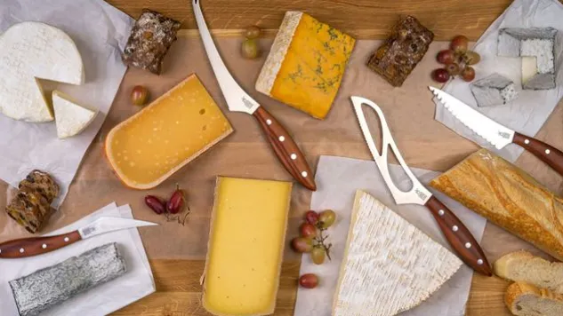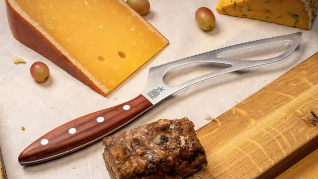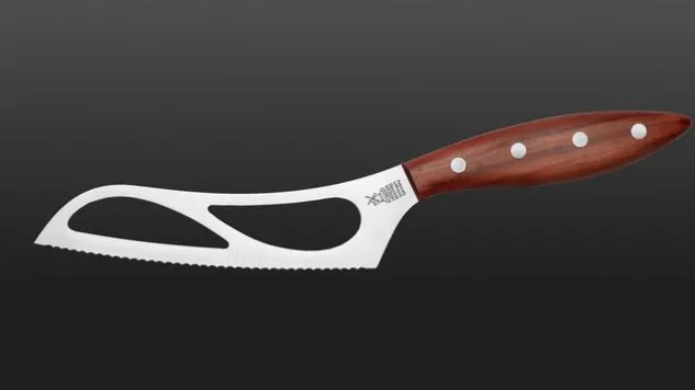 Das Universalkäsemesser zerteilt durch die dünn eingeschliffene konkave Welle Käse ohne Mühe. Dank der Breite des Universalkäsemessers kann man damit härtere Käse wie Gouda, Provolone oder Gruyère stabil schneiden. Der Griff des Universalkäsemessers ist aus hochwertigem Pflaumenholz gefertigt.
