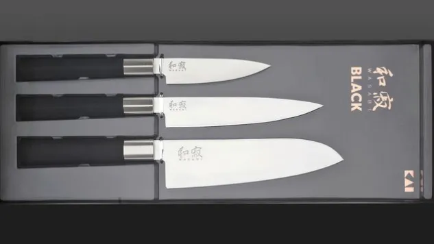 Die schwarzen Griffe des Wasabi Messerset sind im Gegensatz zum traditionellen japanischen Holzgriff nicht gesteckt, sondern umschliessen die Wasabi Messerset Klingen komplett.